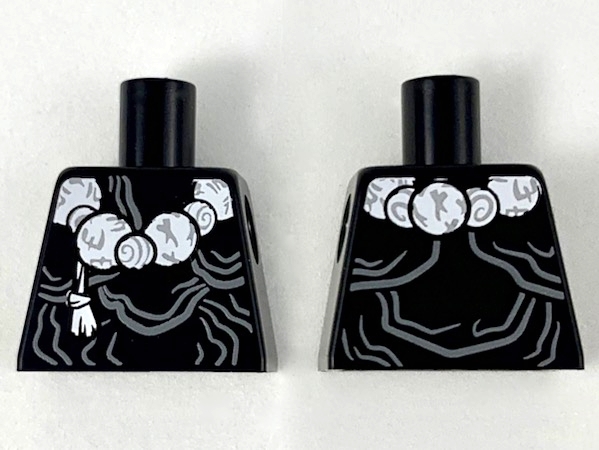 Torso Ninjago White Stone Beads Necklace with Tassel, Dark Bluish Gray Contour Lines Pattern