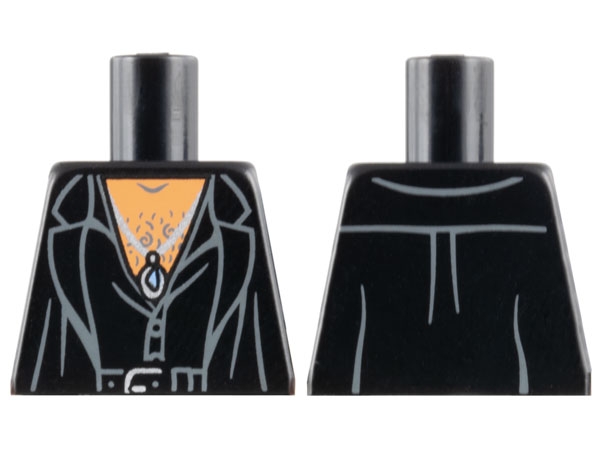 Torso Jacket over Partially Open Shirt, Belt with Silver Buckle, Nougat Hairy Chest, Pendant Necklace Pattern