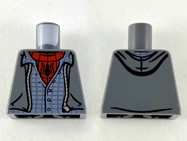Torso Jacket with Hood, Silver Zipper, Sand Blue Shirt, Red Undershirt with Black Spider and Webs Pattern