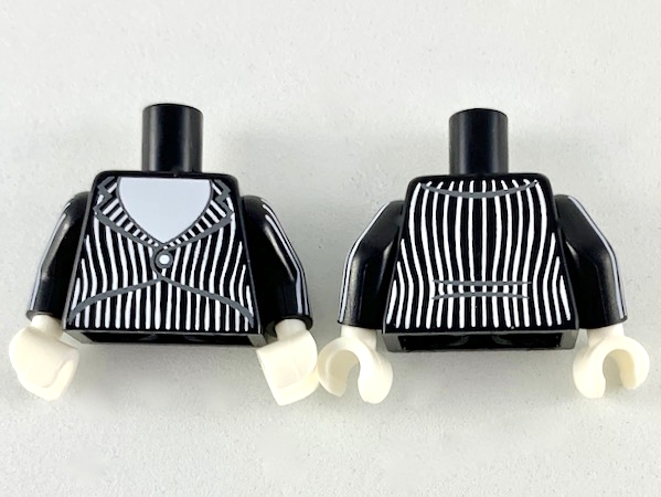 Torso Tuxedo Jacket with White Shirt, Stripes and Centered Button Pattern / Black Arms with 6 White Stripes Pattern / White Hands