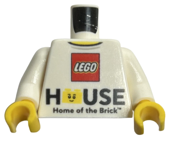 Torso LEGO Logo 'HOUSE Home of the Brick' Pattern / White Arms / Yellow Hands