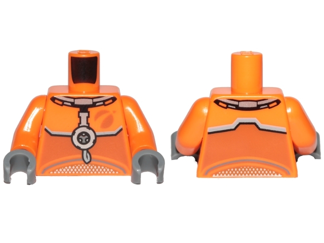 Torso Spacesuit with Dark Bluish Gray Stripes Pattern / Orange Arms / Dark Bluish Gray Hands