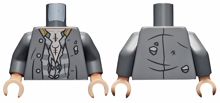 Torso Tattered Jacket, Shirt with Prison Stripes and Light Nougat Chest with Tattoos Pattern / Dark Bluish Gray Arms / Light Nougat Hands