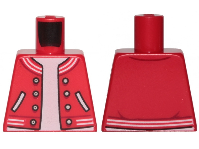 Torso Letterman Jacket with Striped Trim, Pockets, and Silver Buttons over White Shirt Pattern