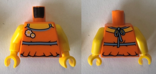 Torso Halter Top with Medium Blue Trim and Flowers, Yellow Neck, Covered Back Pattern / Yellow Arms / Yellow Hands