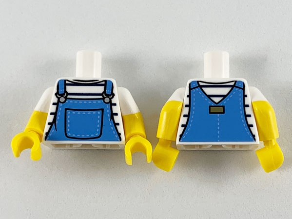 Torso Shirt with Black Stripes and Medium Blue Overalls Pattern / Yellow Arms with Molded White Short Sleeves Pattern / Yellow Hands