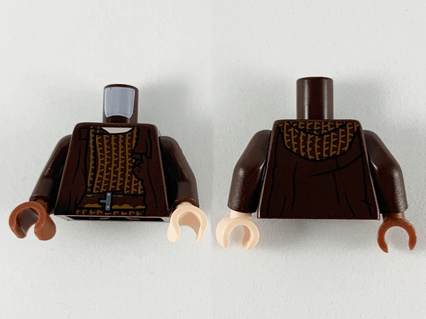Torso Robe Over Tunic with Medium Nougat Stripes Pattern / Dark Brown Arms / Light Nougat Hand Left / Reddish Brown Hand Right