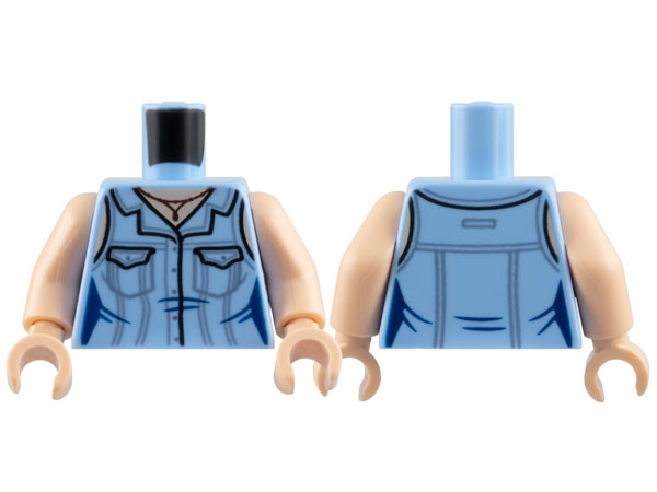 Torso Female Sleeveless Button Up Blouse with Pockets and Sand Blue Stripes, Dark Brown Pendant Necklace, Light Nougat Neck and Shoulders Pattern / Light Nougat Arms / Light Nougat Hands