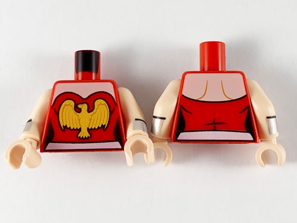 Torso Female Strapless, Bright Light Orange Eagle, White Belt Pattern / Light Nougat Arms with Silver and Light Bluish Gray Cuffs / Light Nougat Hands
