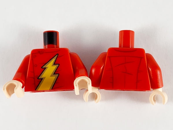 Torso Super Hero Gold and Bright Light Orange Lightning Bolt Pattern (Flash) / Red Arms / Light Nougat Hands