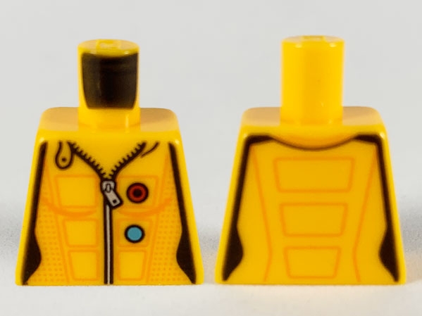 Torso Female Jumpsuit, Orange Trim, Silver Zipper, Red and Medium Azure Circles Pattern
