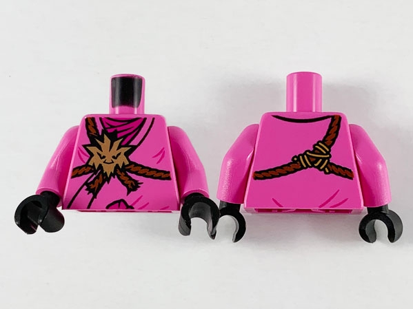 Torso Ninjago Brown Rope, Gold Medallion and Magenta Undershirt Pattern / Dark Pink Arms / Black Hands