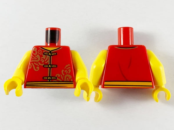 Torso Vest with Gold Dragons, Edging, and Frog Clasps, Bright Light Orange Sash, Dark Red Wrinkles on Back Pattern / Yellow Arms / Yellow Hands