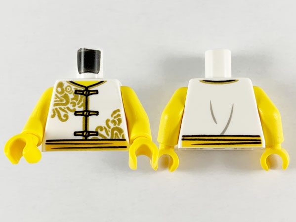 Torso Vest with Gold Dragons, Edging, and Frog Clasps, Bright Light Blue Sash, Dark Bluish Gray Wrinkles on Back Pattern / Yellow Arms / Yellow Hands