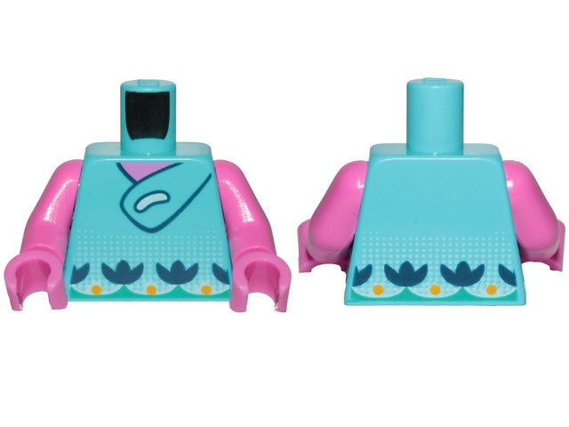 Torso Trolls Tunic, Dark Blue Flowers and Bright Light Orange Dots Pattern / Dark Pink Arms / Dark Pink Hands
