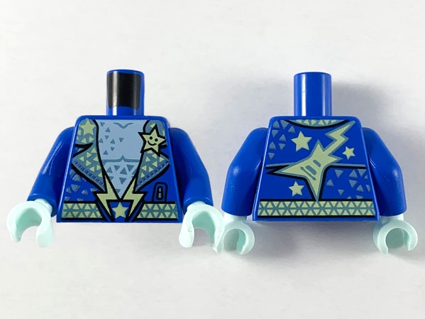 Torso Jacket with Metallic Light Blue Lapels and Triangles, Yellowish Green Star and Lightning Pattern / Blue Arms / Light Aqua Hands