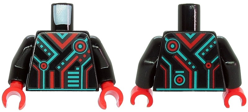 Torso Dark Turquoise and Red Stripes, Rectangles and Circles Pattern / Black Arms / Red Hands