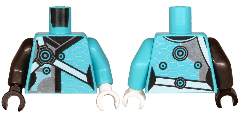 Torso Tunic with Black Hems and White Straps Pattern / Medium Azure Arm Left / Pearl Dark Gray Arm Right / White Hand Left / Black Hand Right