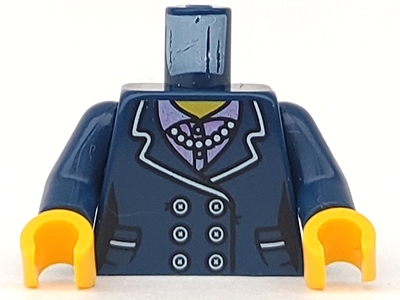 Torso Female Suit Jacket with Buttons and Pockets, Lavender Striped Shirt, Pearl Necklace Pattern / Dark Blue Arms / Yellow Hands