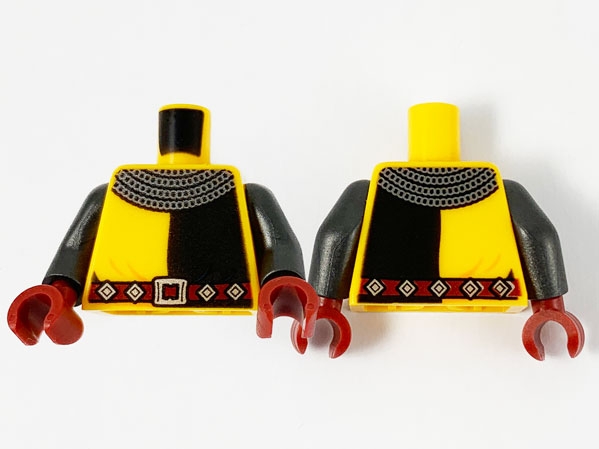 Torso Castle Knight with Silver Chain Mail Collar, Black Left Panel, Dark Red Belt with Gold Buckle and Studs Pattern / Pearl Dark Gray Arms / Dark Red Hands