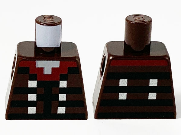 Torso Pixelated Dark Red Collar, Black Stripes and Silver Buttons Pattern