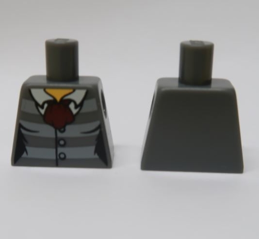 Torso Female Jacket with Light Bluish Gray Stripes, 3 Buttons and Dark Red Scarf without Back Print Pattern