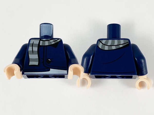 Torso Jacket with Black Button, Light Bluish Gray and Dark Bluish Gray Striped Scarf Pattern / Dark Blue Arms / Light Nougat Hands