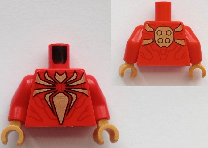Torso Spider-Man Muscles Outline with Black Outlined Gold Spider Pattern (Iron Spider) / Red Arms / Pearl Gold Hands