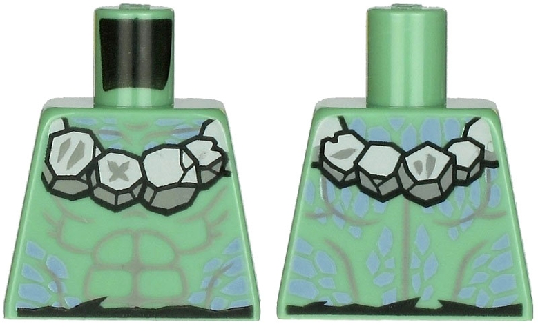 Torso Bare Chest with Light Bluish Gray Muscles Outline, Stone Necklace and Sand Blue Spots Pattern