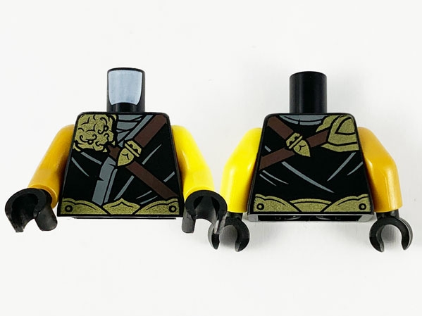 Torso Tunic, Gold Ape Shoulder Armor, Dark Bluish Gray Trim and Dark Brown Shoulder Belt Pattern / Yellow Left Arm / Pearl Gold Right Arm / Black Hands