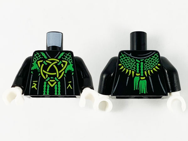 Torso Robe, Bright Green Mesh Shawl, Lime Celtic Knot and Ninjago Logogram Letter D and Letter R Pattern / Black Arms / White Hands