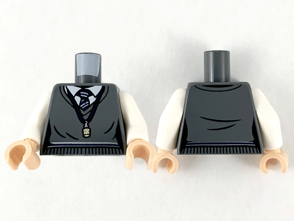 Torso Female Outline Sweater Vest with White Shirt, Dark Blue and Light Bluish Gray Tie and Trim (Ravenclaw) and Butterbeer Cork Necklace Pattern / White Arms / Light Nougat Hands