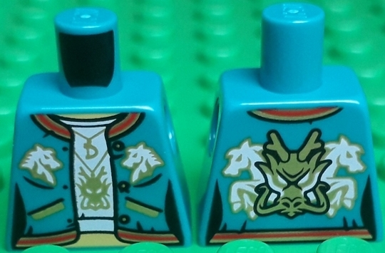Torso Female Jacket with White Undershirt, Red Trim and Horse Heads, Pockets, Necklace, and Yellow Midriff Pattern