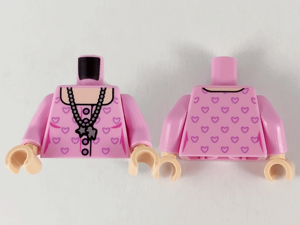 Torso Female, Silver Necklace with Charms, Light Nougat Neck and Medium Lavender Heart Outlines Pattern / Bright Pink Arms / Light Nougat Hands