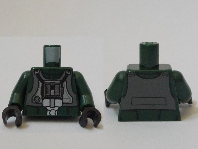 Torso SW Rebel A-wing Pilot with Dark Bluish Gray Vest and Black Front Panel with Breathing Apparatus Pattern / Dark Green Arms / Black Hands