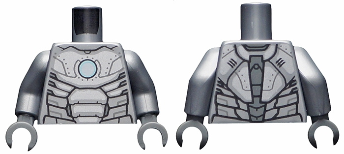 Torso Armor, White Circle Arc Reactor and Silver Trim Pattern / Flat Silver Arms / Dark Bluish Gray Hands