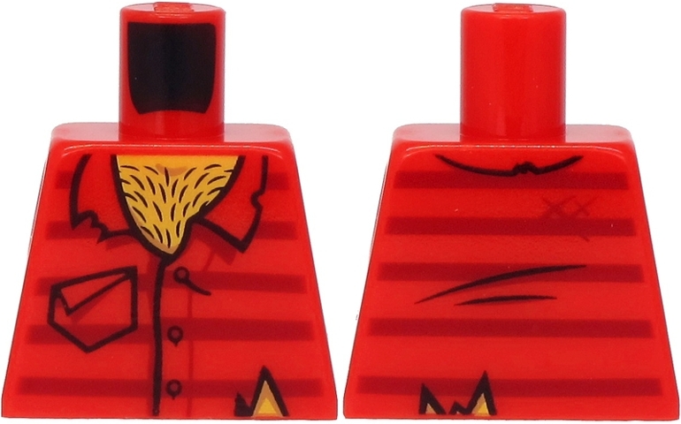 Torso Worn Shirt with Dark Red Stripes and Pocket, Hairy Chest Pattern