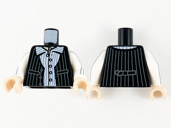Torso Vest over Shirt and Dark Bluish Gray Pinstripes Pattern / White Arms with 6 Dark Bluish Gray Pinstripes Pattern / Light Nougat Hands