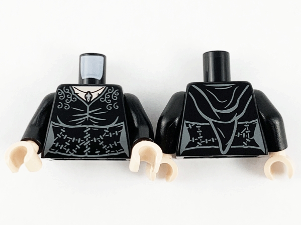 Torso Female Robe with Hood, Light Nougat Neck, Silver Pendant, Dark Bluish Gray Filigree and Stitches Pattern / Black Arms / Light Nougat Hands