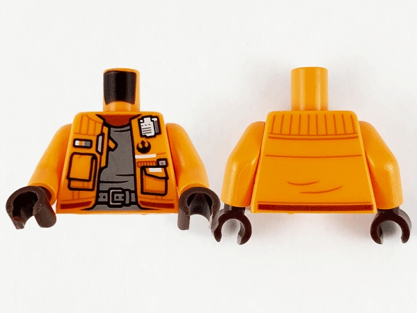 Torso Jacket with Pockets and Black SW Rebel Alliance Symbol, Reddish Brown Neck, Dark Bluish Gray Shirt and Belt Pattern / Orange Arms / Dark Brown Hands