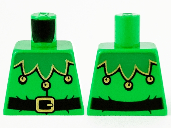 Torso Green Scalloped Collar with Gold Trim and Bells, Black Belt with Gold Buckle Pattern