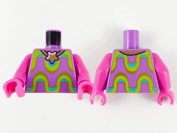 Torso Gold Star Necklace, Lime, Medium Azure and Gold Wavy Stripes Pattern / Dark Pink Arms / Dark Pink Hands