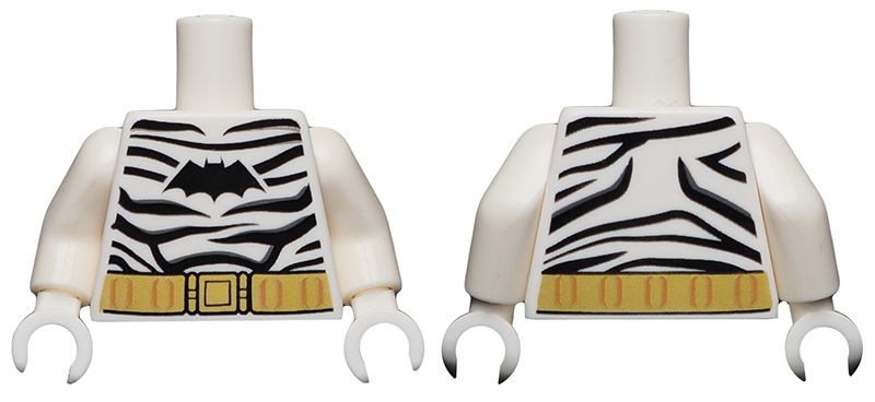 Torso Batman Costume Zebra with Black Stripes, Gold Belt and Black Logo Pattern / White Arms / White Hands