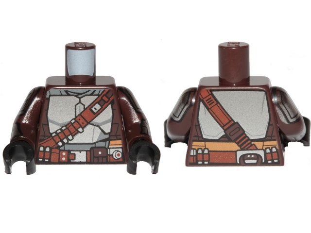 Torso SW Mandalorian Silver Beskar Armor Plates and Reddish Brown Belts Pattern (Din Djarin) / Dark Brown Arms with Silver Beskar Plates Pattern / Black Hands