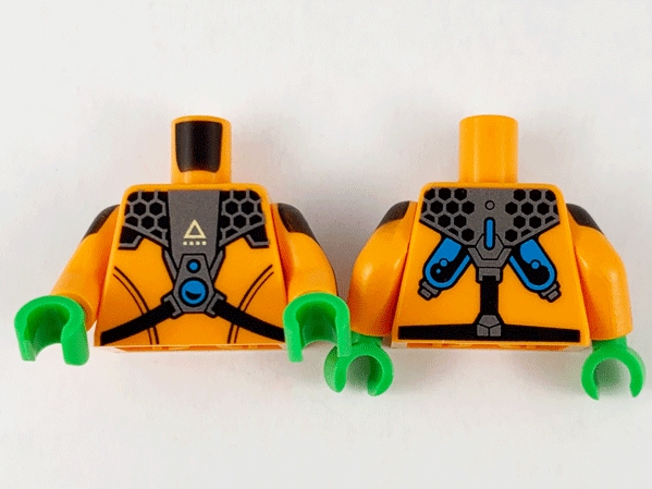 Torso Jumpsuit with Pearl Dark Gray Armor Gear Pattern / Orange Arms with Black Short Sleeve, Stripes and Pearl Dark Gray Insignia Pattern / Bright Green Hands