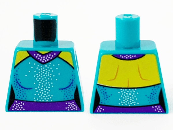 Torso Female Outline Dress, Yellow Shoulders, Dark Purple Collar and Belt, Silver and Dark Purple Dots Pattern
