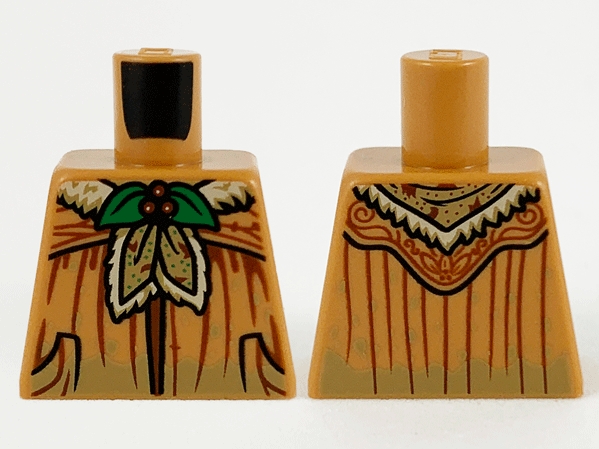 Torso Female Robe with Dark Tan Mud, Green Holly Brooch, Reddish Brown Filigree and Wrinkles, Black Pockets, Tan Shawl Pointed on Back Pattern