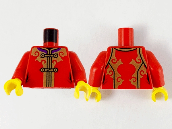 Torso Tang Jacket with Dark Purple Collar, Gold Trim and Ties Pattern / Red Arms / Yellow Hands