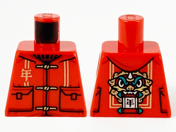 Torso Tang Jacket, Gold Ties and Double Stripes, Chinese Logogram '年' (Nian/Year) and Lion Beast Face on Back Pattern