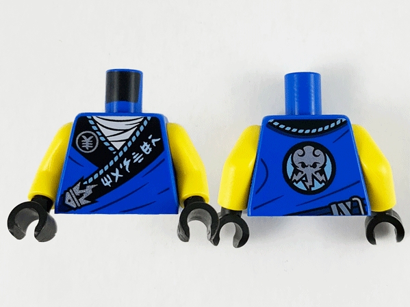 Torso Tunic, White Shirt, Wide Black Hems with White Ninjago Logogram 'MASTER' on Hem and Silver Octopus Pattern / Yellow Arms / Black Hands